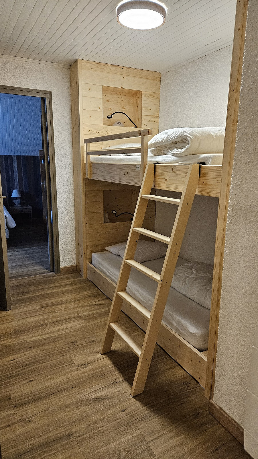 A l étage : un coin nuit sur mesure mesure ( lits superposés ) , un wc , une salle d'eau, une grande chambre avec son dressing lit 160 + lits superposés également.