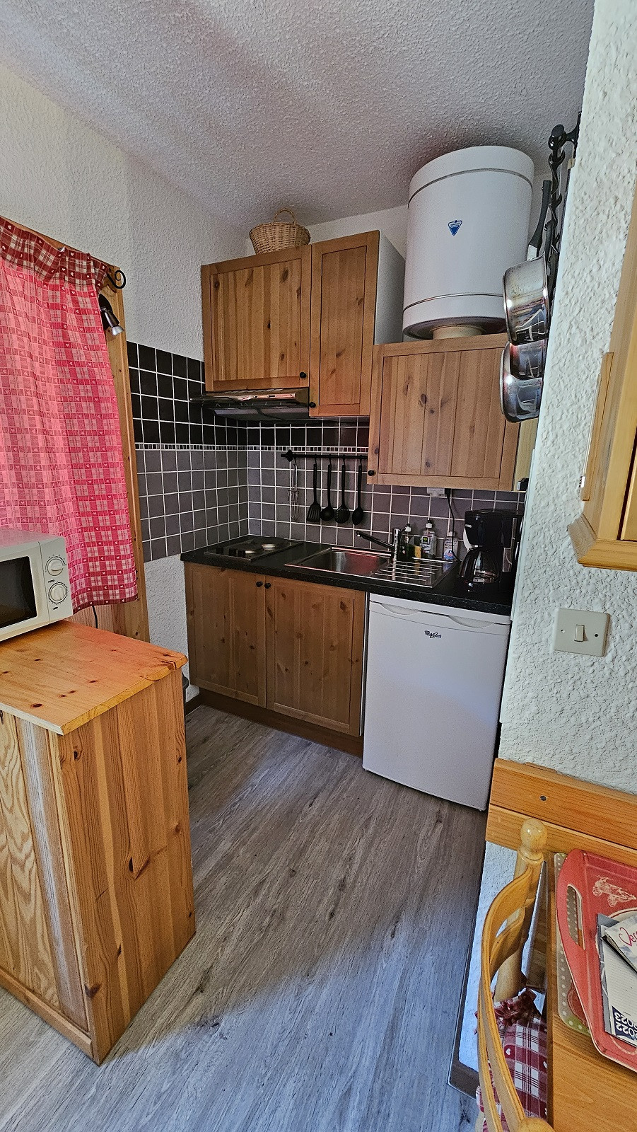 une salle d eau wc, séjour avec un canapé lit et son repas repas, kitchenette bien agencé et très fonctionnelle.