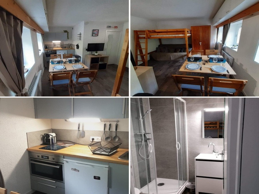 une salle d eau wc, séjour avec un canapé lit et son repas repas, kitchenette bien agencé et très fonctionnelle...