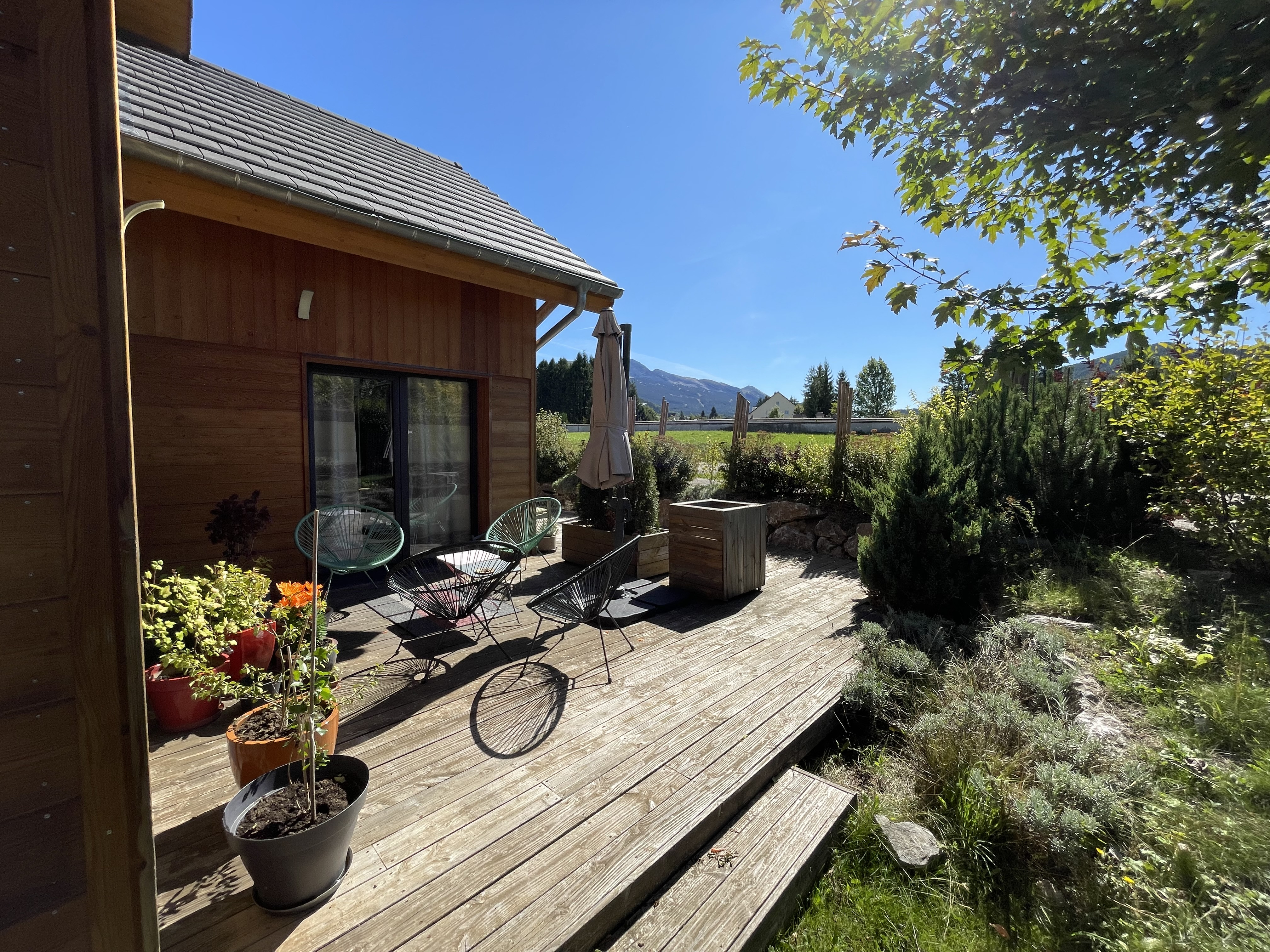 A 2' pas du cœur du village, dans un lotissement fort bien situé et ensoleillé, belle VILLA d'architecte de plain pied à ossature bois,