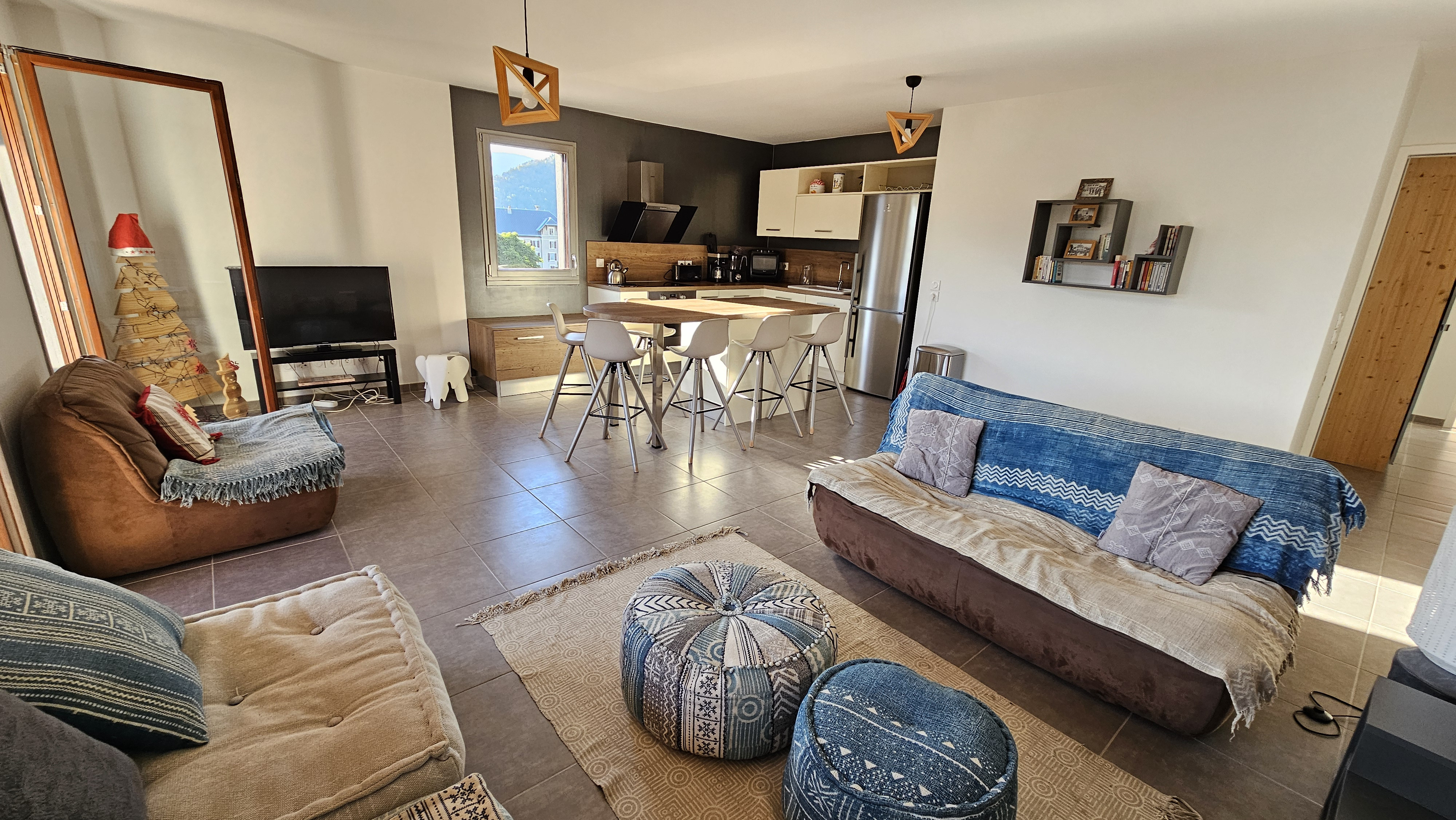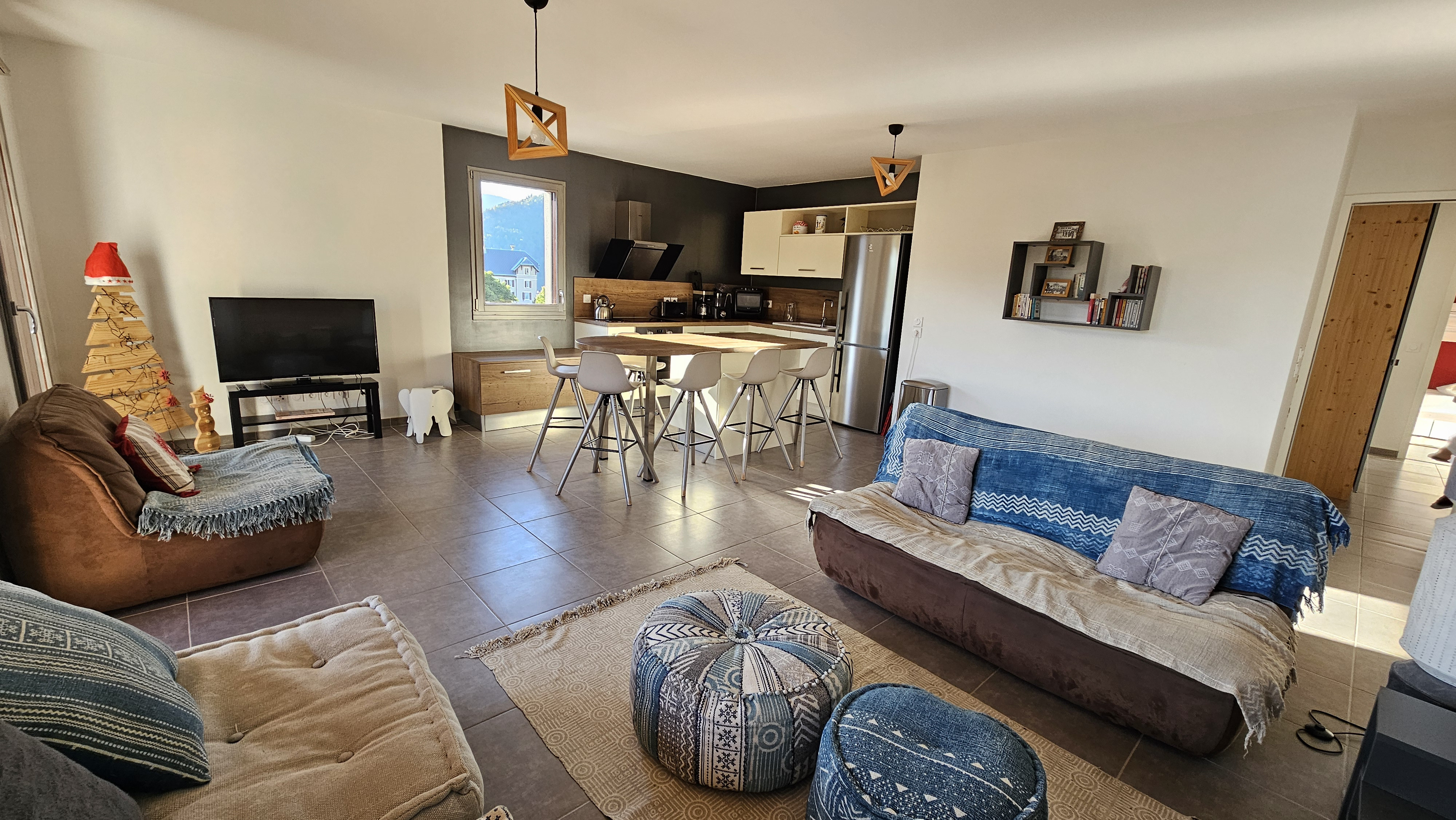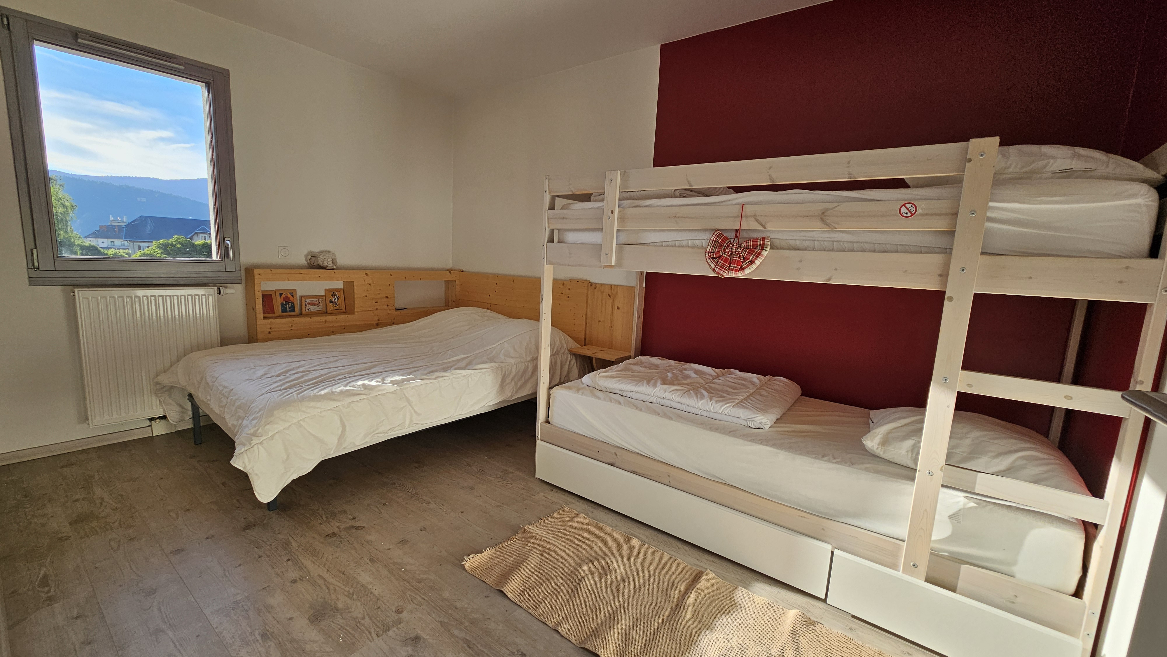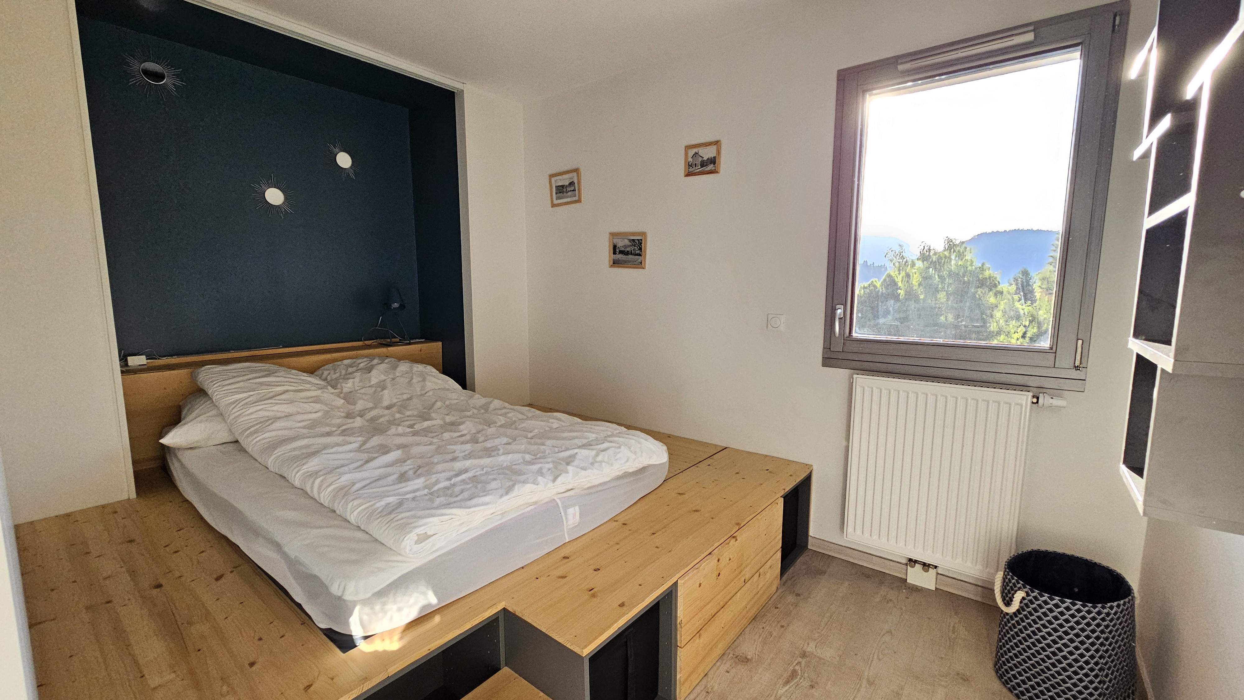 Très BELLE VUE ( PLUS QUE CA ! ), dégagement, chambre 1 , wc, salle de douche, chambre 2. Chauffage urbain bois .