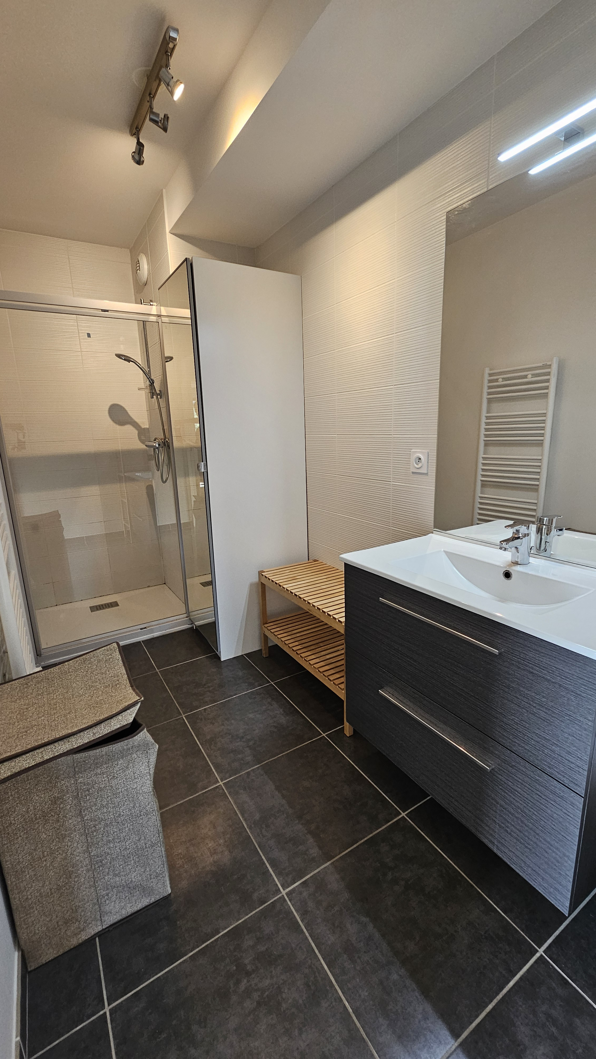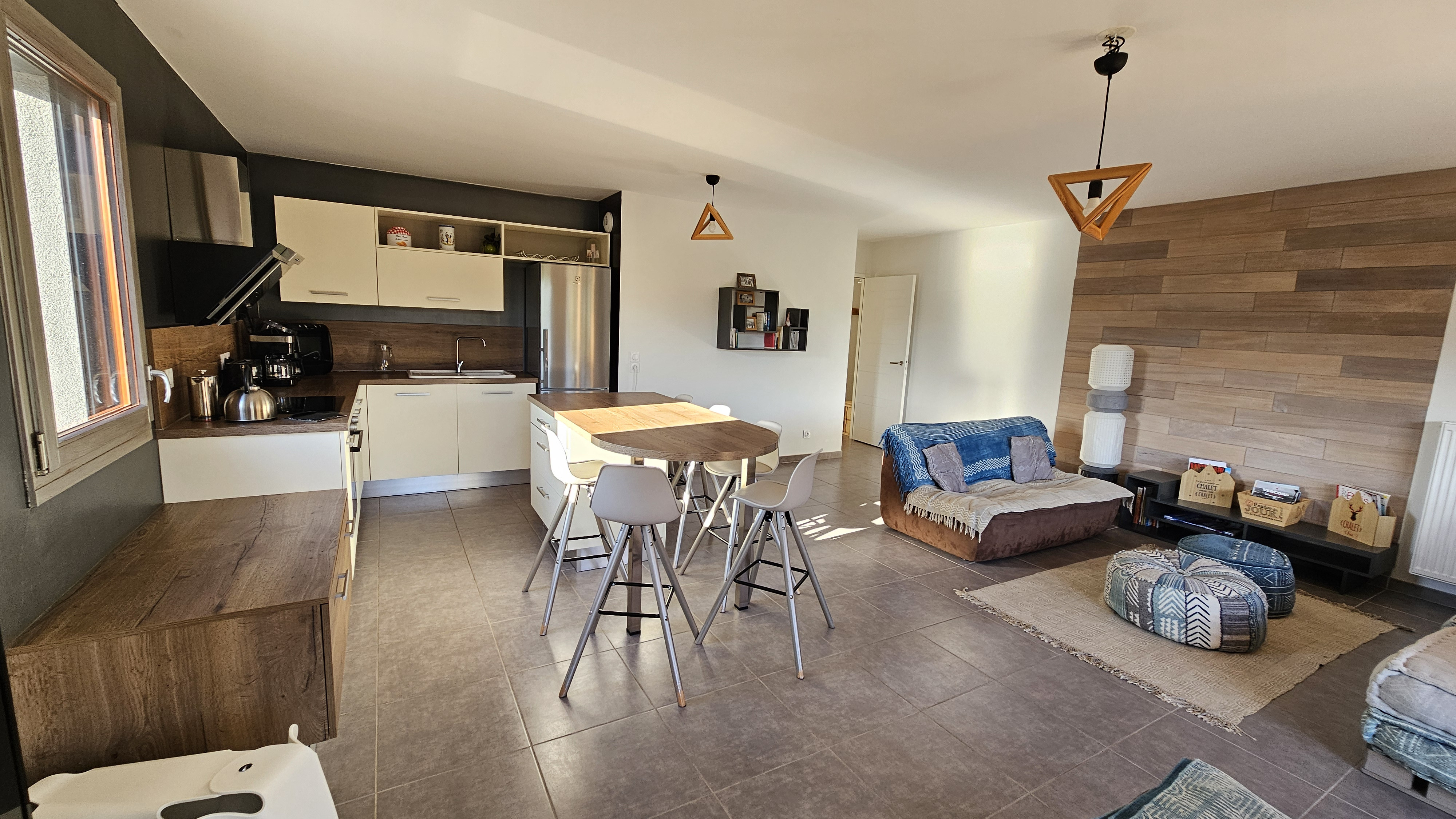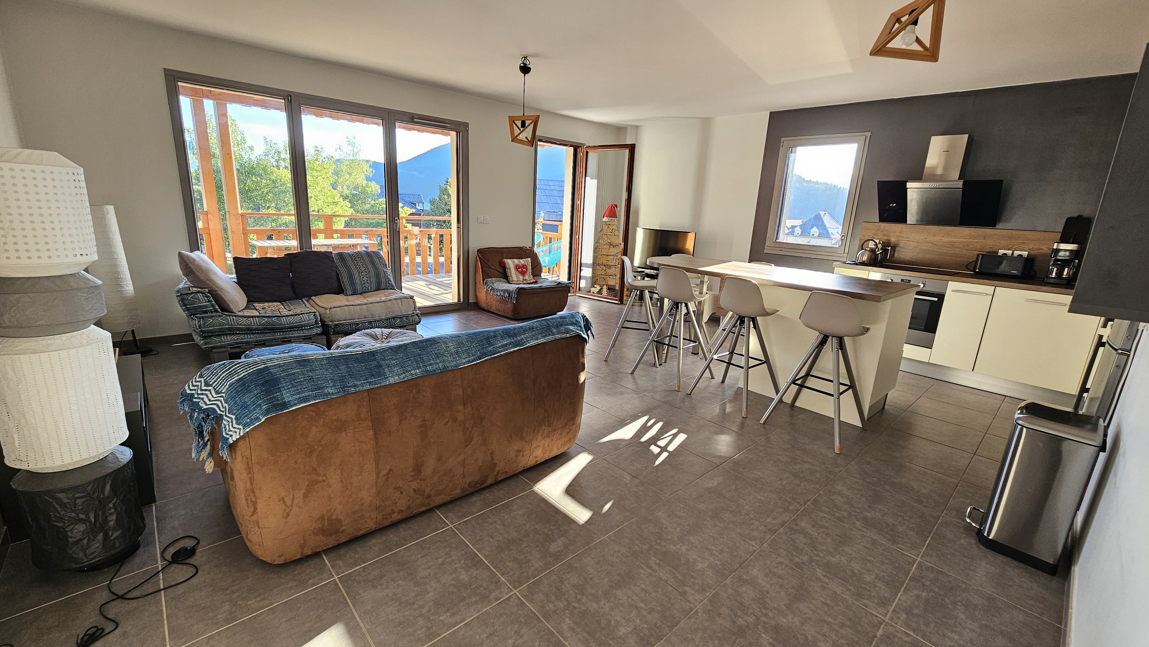 grand séjour avec cuisine à l'américaine équipée ( 36 M2 ) , BALCON /TERRASSE SUD 15 M2 ( avec point lumineux + prise ),