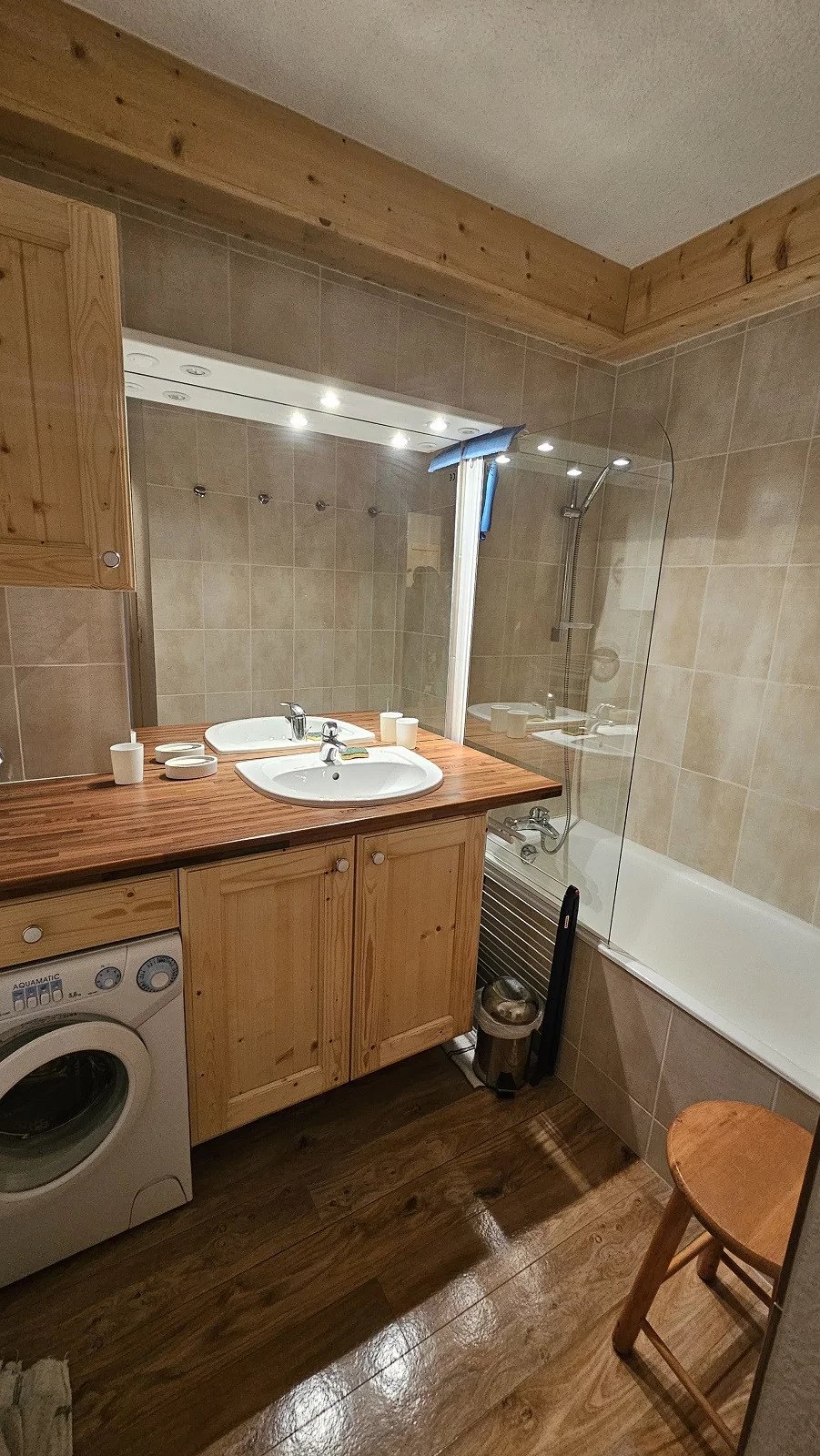 La salle de bain est équipée d'une baignoire et de WC séparés. Vous trouverez également de nombreux rangements pour vos équipements de ski et affaires personnelles.