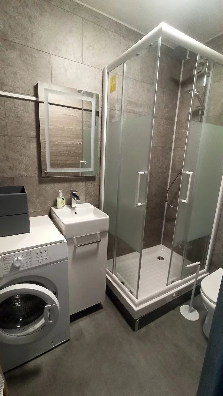 Il comprends une entrée avec penderie et rgt, une cuisine équipée , une salle d'eau avec lave linge et wc,